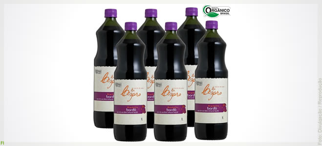 Suco de uva orgânico químico sintético. A bebida sem glúten é feita a partir de uvas cultivadas ecologicamente, sem adição de produtos químicos sintéticos ou uso de agrotóxicos (Brasil).