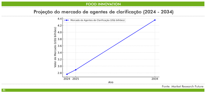 Para alcançar esse efeito visual e garantir estabilidade ao longo do shelf life, a indústria de bebidas recorre aos agentes de clarificação, mais comumente chamados de agentes clarificantes, um mercado avaliado em US$ 2,76 bilhões em 2024, com expectativa que cresça de US$ 2,89 bilhões em 2025 para US$ 4,36 bilhões até 2034, com uma taxa de crescimento anual composta (CAGR) de 4,67%, de acordo com dados da Market Research Future.