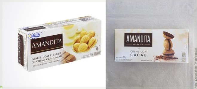 Depois da nova marca corporativa da Lacta, a Mondelez também renovou o logo e embalagens da marca Amandita, que traz waffle crocante com recheio cremoso de cacau.