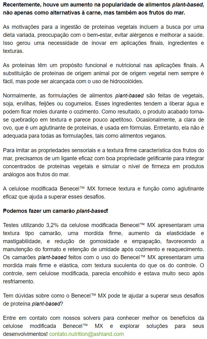 Camarão plant-based: a celulose modificada Benecel™ MX ajuda a superar esse desafio!