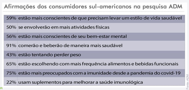 Com 75% dos consumidores sul-americanos mais preocupados com a imunidade desde a covid-19, as pessoas estão mudando de uma abordagem defensiva contra a doença para uma mais proativa e holística. Os consumidores estão procurando maneiras de incorporar soluções de suporte à função imunológica em suas vidas diárias. Produtos com ingredientes funcionais que contribuam para a saúde intestinal e que possam auxiliar o bom funcionamento do sistema imune atrairão cada vez mais a atenção do consumidor.