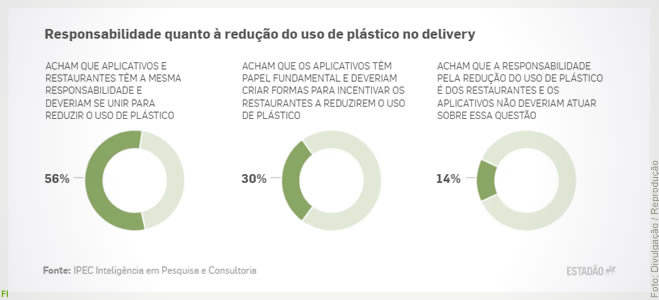 Para a maioria dos consumidores (86%), as empresas de aplicativo têm tanta ou mais responsabilidade que os restaurantes em entregas livres de plástico descartável e, por isso, deveriam se unir aos comércios para oferecerem alternativas de embalagem. Uma parcela de 30% declarou que os apps têm papel fundamental nessa mudança de hábito.