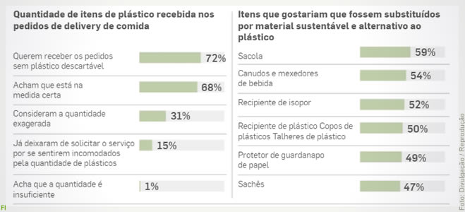 Pesquisa diz que 72% dos consumidores gostariam de entrega de comida via delivery sem plástico descartável; 15% já deixaram de fazer pedido por discordarem de receber pedido com talheres, copos ou sachês