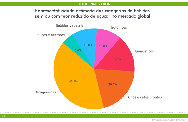 As bebidas representam uma fatia relevante desse total, estimada entre 40% e 45%, o que reforça a sua importância estratégica nas reformulações. Um exemplo é o segmento de refrigerantes diet, cuja receita, no Brasil, passou de US$ 163,9 milhões em 2018 para uma estimativa de US$ 199,1 milhões em 2025, conforme apontam os dados da Statista.