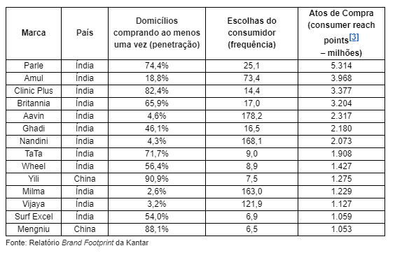 Segundo a edição de 2019 do relatório Brand Footprint da Kantar, existem 17 marcas globais de produtos de consumo massivo (FMCG) que são escolhidas pelos consumidores mais de um bilhão de vezes ao ano, e 14 marcas locais de FMCG que estão neste exclusivo ‘clube de bilionários’.