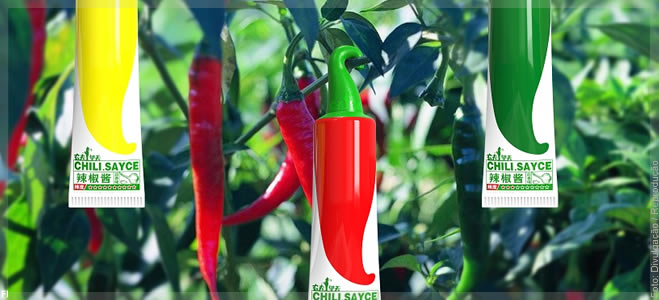 A escolha foi por um desenho atrativo e divertido: a bisnaga “assume a forma de uma pimenta”. A tampa em formato de “cabinho” faz com que a embalagem possa ser pendurada em gancheiras. O consumidor tem a impressão de “colher pimenta” na hora de pegar o produto.