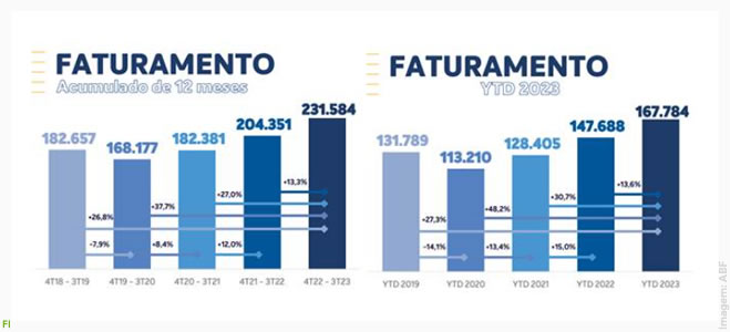 No acumulado de doze meses, a pesquisa da ABF indica que houve um avanço de 13,3% na receita, que saltou de R$ 204,351 bilhões para R$ 231,584 bilhões. Já entre janeiro e setembro deste ano (YTD, na sigla em inglês), o crescimento foi 13,6% superior ao mesmo período de 2022, dados que atestam o bom momento vivido pelo setor. Para a entidade, estes indicadores apontam que o setor deve encerrar o ano dentro das projeções realizadas: o faturamento deve crescer entre 9,5% e 12%, as operações 10%, as redes 4%, e o número de empregos também 10%. Porém, a ABF está atenta aos cenários internacional e nacional que possam, eventualmente, impactar o setor no 4º trimestre.