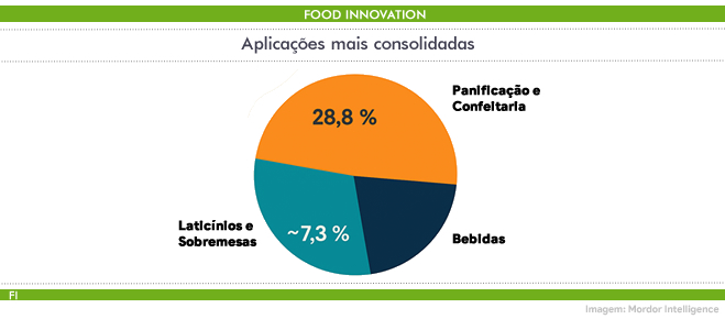 Segundo dados da Mordor Intelligence, as aplicações consolidadas seguem lideradas pela panificação e confeitaria, que representaram entre 28,8% e 30,2% do mercado em 2024. Já os laticínios e sobremesas despontam como o segmento mais dinâmico, impulsionado pela demanda por produtos sem lactose e registrando CAGR de 7,3%. O setor de bebidas também mantém trajetória positiva, especialmente em cervejas, sucos e RTDs, sustentado por enzimas que aumentam rendimento, melhoram clarificação e reduzem o teor de açúcar sem recorrer a adoçantes artificiais.