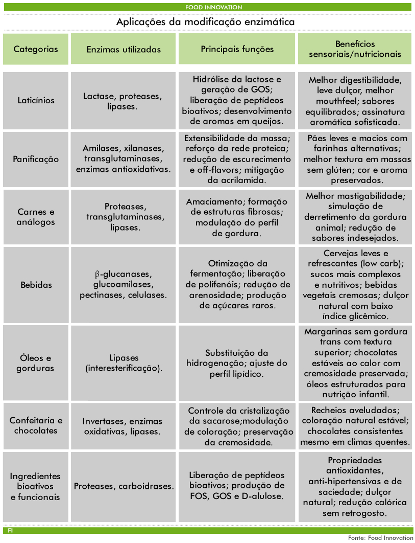 Esses avanços ilustram como a modificação enzimática está evoluindo de uma ferramenta tradicional de processamento para uma plataforma de inovação capaz de gerar novas funcionalidades, sabores e perfis nutricionais em alimentos e bebidas, antecipando demandas emergentes e criando oportunidades estratégicas para inovação, com otimização de processos e valor agregado.