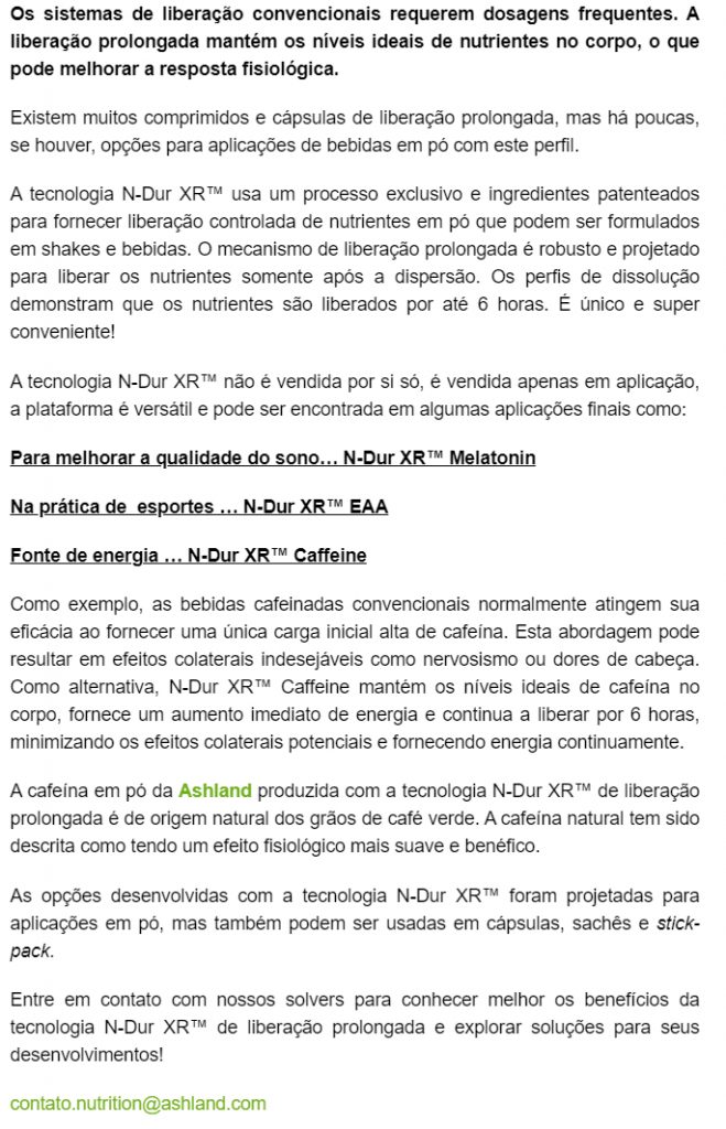 Food InnovationDestaques Empresas & NegóciosN-Dur XR™ sistema de liberação prolongada para bebidas em pó