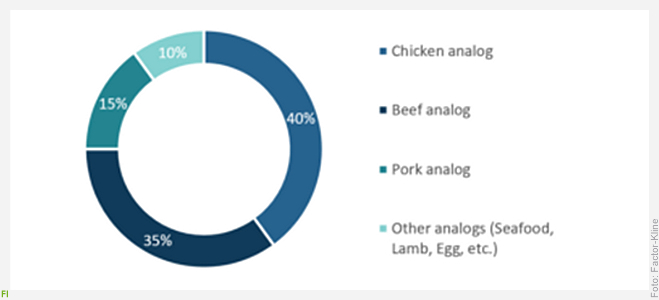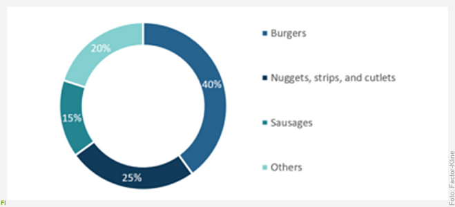 Hambúrgueres são os análogos mais populares e mais fáceis de se encontrar. Diversas das principais empresas no mercado de carne vegetal iniciaram e desenvolveram seus negócios tendo esses hambúrgueres como o primeiro e único produto em seus portfólios. Por exemplo, a Beyond Meat (EUA) e a Impossible Foods (EUA) começaram seus negócios no mercado de carne vegetal com hambúrgueres. Espera-se que esse segmento cresça numa velocidade considerável nos próximos anos, dado que essas empresas estão constantemente desenvolvendo e apresentando uma gama inovadora de produtos na parte de hambúrgueres. Agora, a maioria dos fabricantes de produto de carne vegetal estão focando em produzir uma variedade de produtos análogos à carne de frango à base de vegetais.