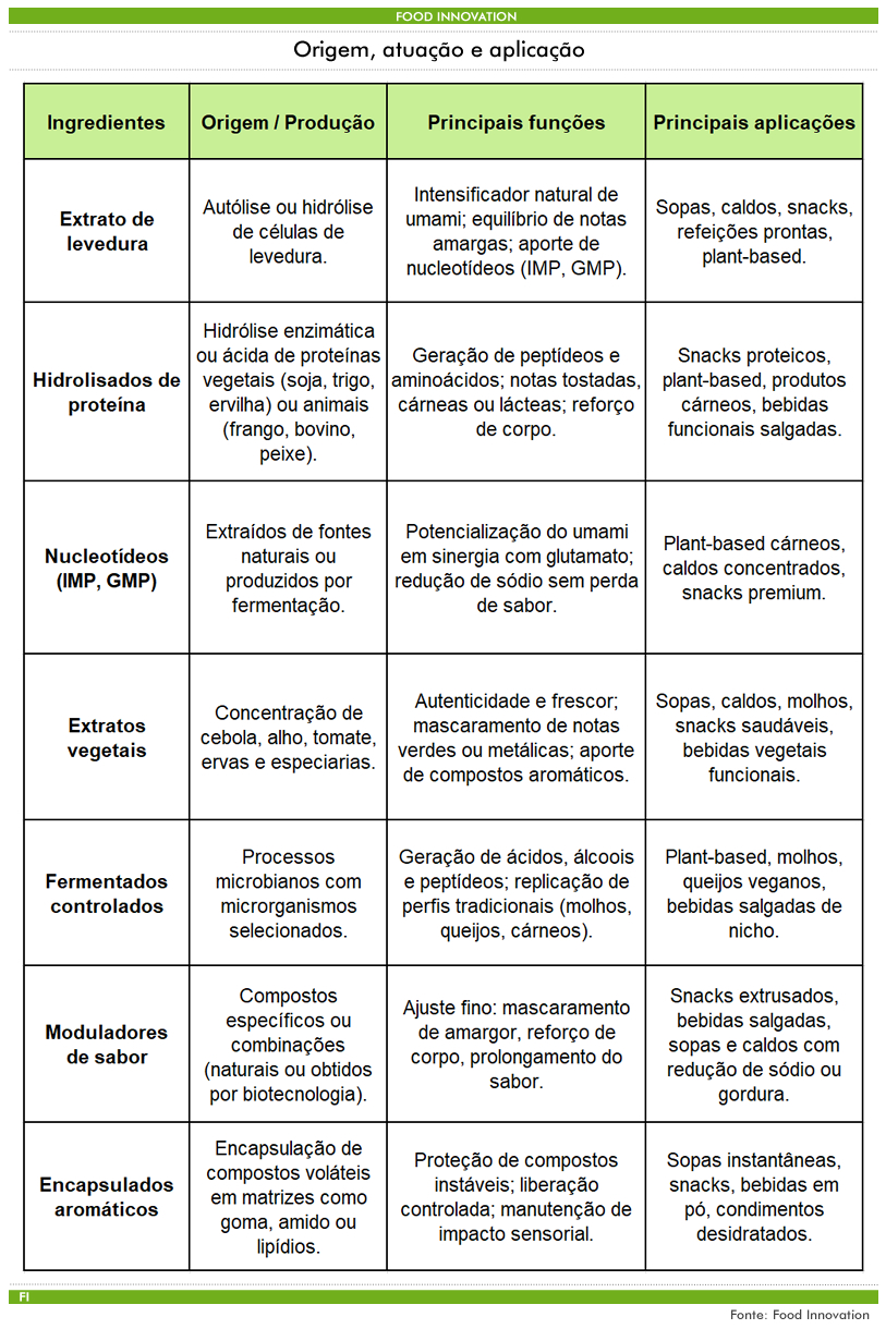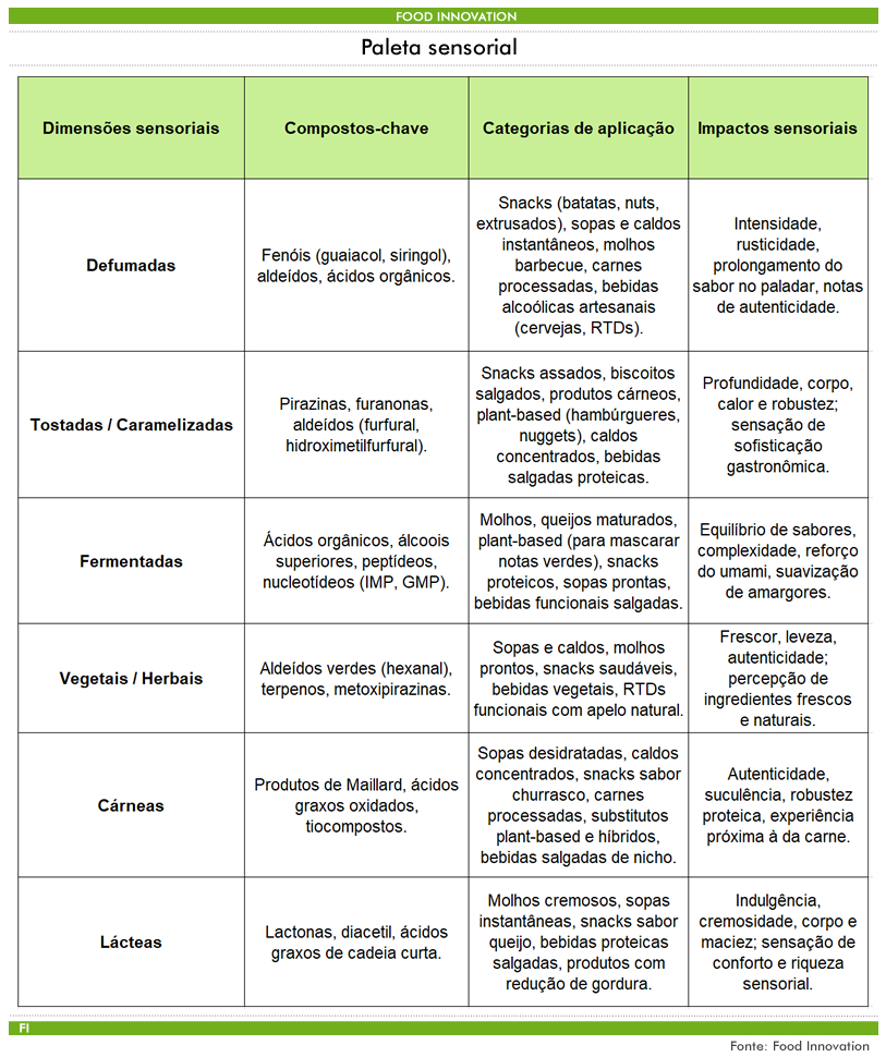 A diversidade de ingredientes disponíveis mostra que os savory flavors não se restringem somente a notas sensoriais, mas são aplicados como ferramentas tecnológicas que viabilizam o desenvolvimento de produtos sensorialmente diferenciados.
