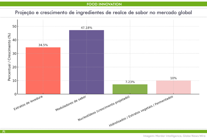 A demanda crescente por produtos com sabor natural, textura aprimorada e perfis mais sofisticados tem impulsionado a utilização de extratos de levedura, nucleotídeos e hidrolisados de proteínas na indústria brasileira, reforçando o papel desses ingredientes na inovação e no desenvolvimento de produtos com rótulos limpos e foco em bem-estar.